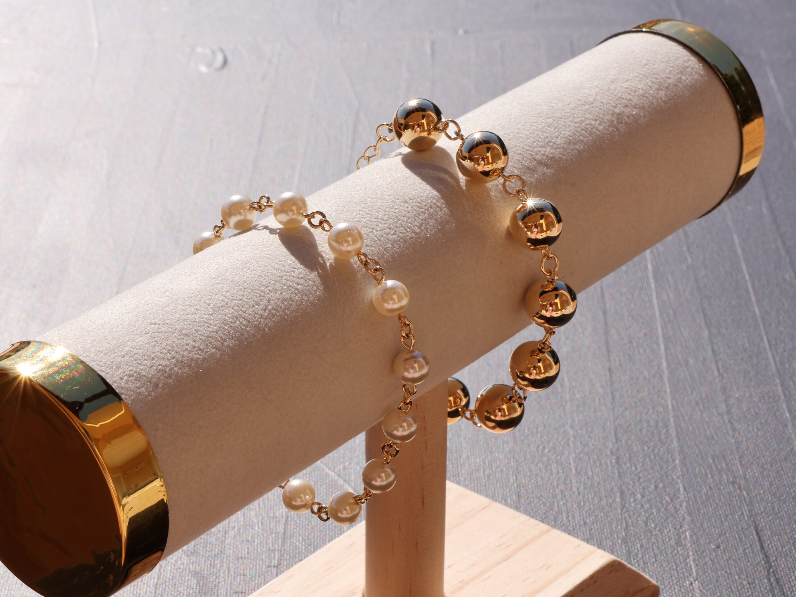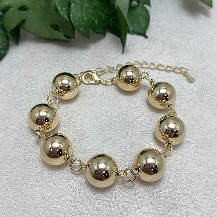 Clássica e moderna ao mesmo tempo, essa pulseira é composta por esferas douradas polidas, que refletem a luz com sofisticação e elegância.
